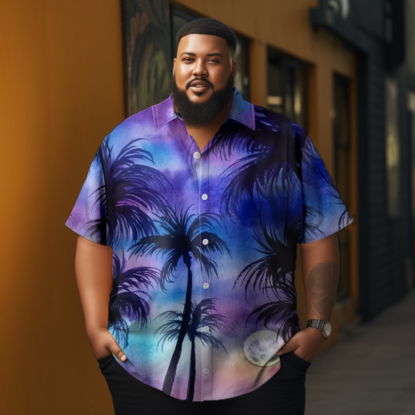 Coconut Summer Tropical  Printed  Casual Men's Plus Size Short Sleeve Shirt