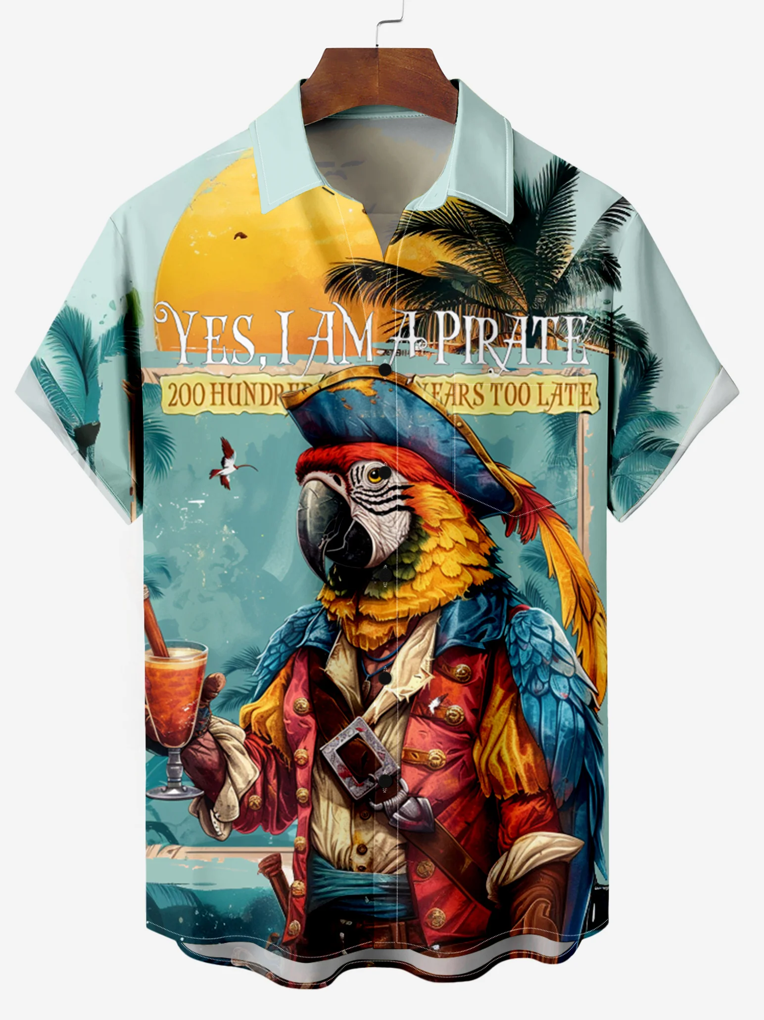 Fashion Hawaiian Pirate Parrot Printed Men's Plus Size  Short Sleeve Shirt