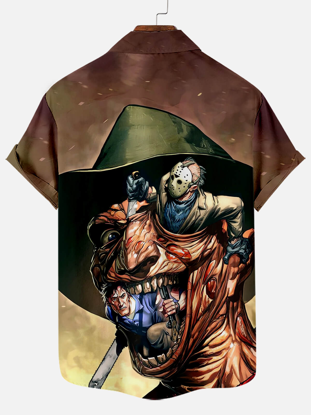 Halloween Horror Movie Character Monster Print Men's Short Sleeve Shirt