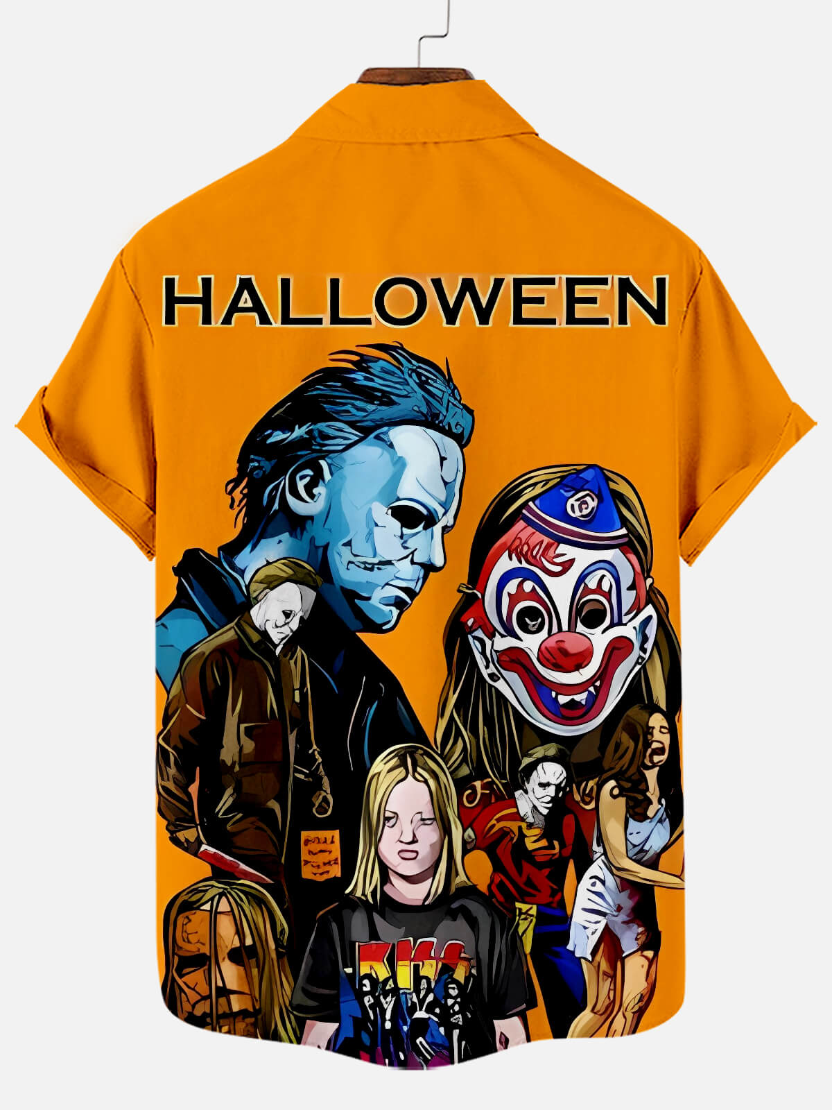 Halloween Horror Movie Character Print Men's Short Sleeve Shirt