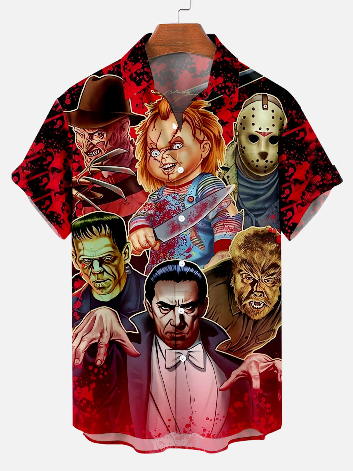 Halloween Movie Character Print Men's Short Sleeve Shirt