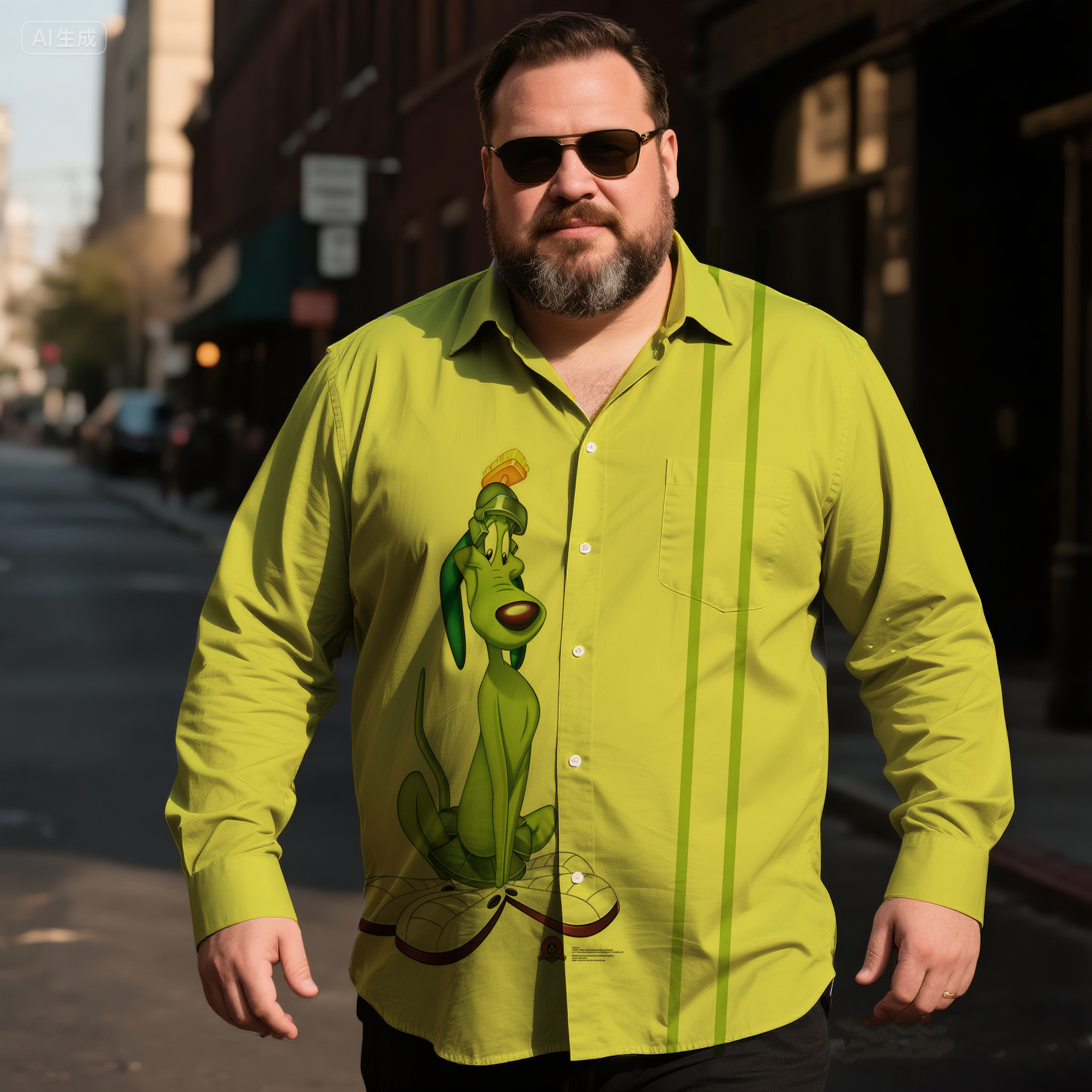 Men's Casual Classic Nostalgic Anime Dog Costume Printing Long Sleeve Shirt
