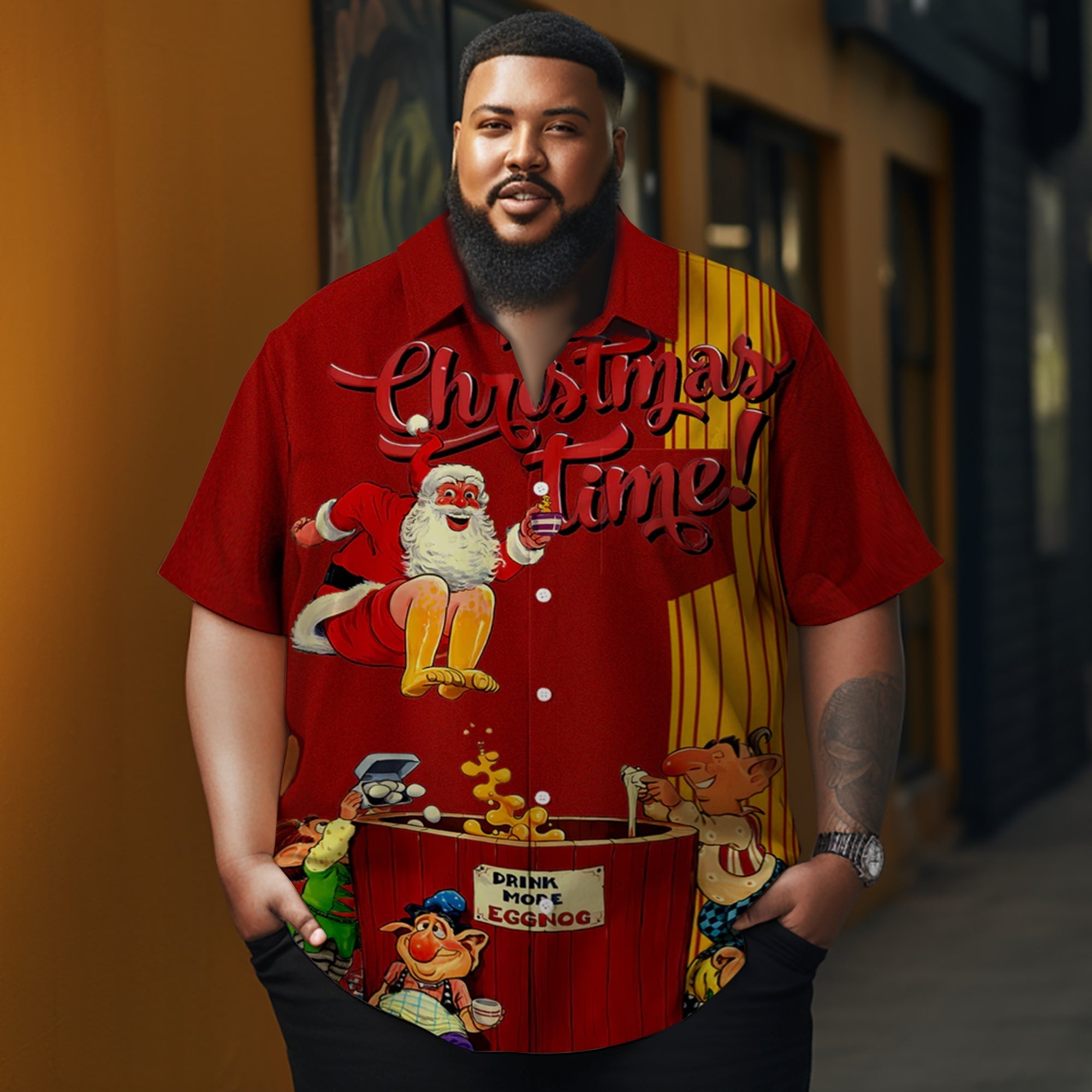 Men's Christmas Santa Claus printed Plus Size Short Sleeve Shirt