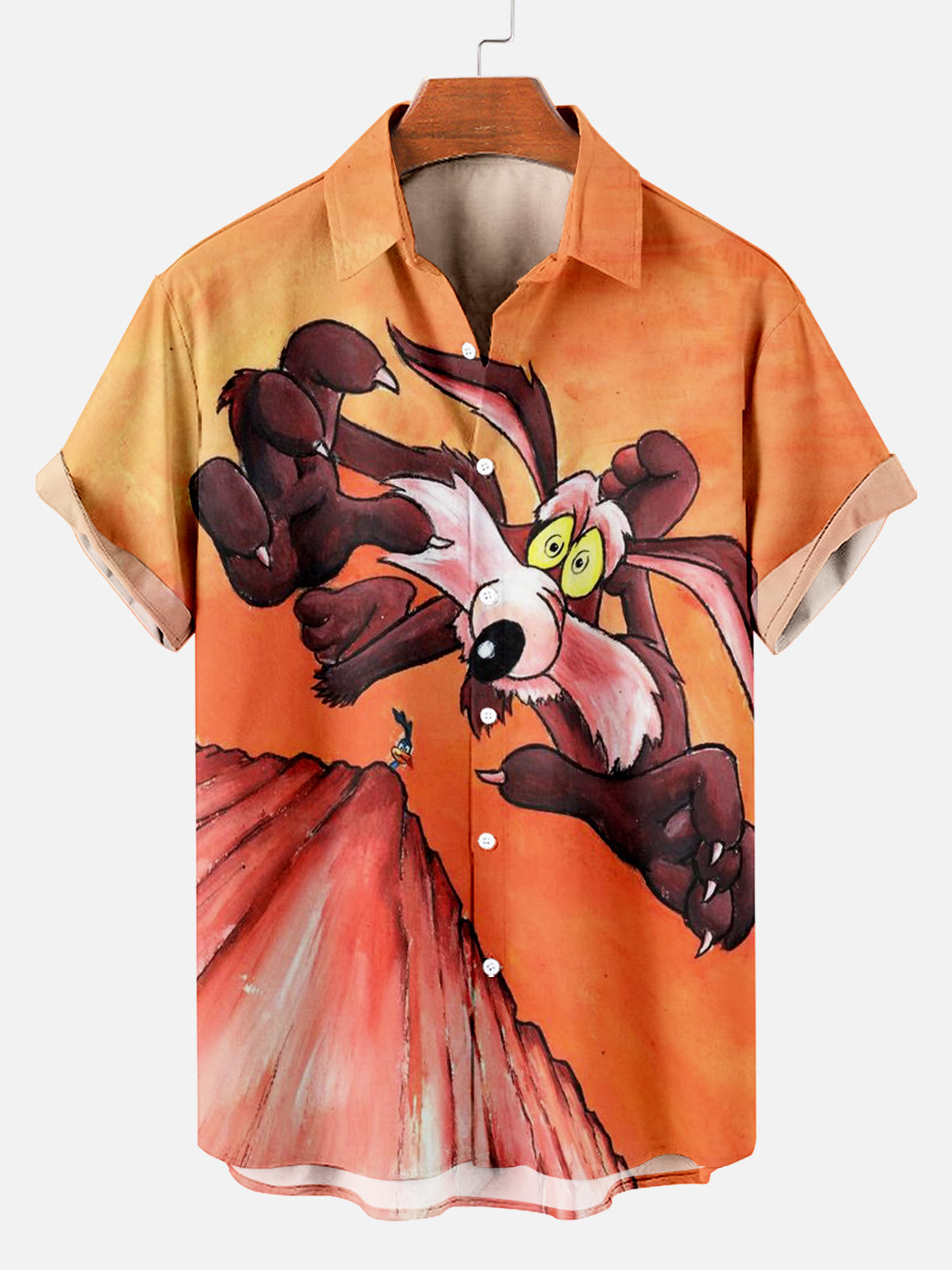 Men's Classic Cartoon Print Plus Size Short Sleeve Shirt