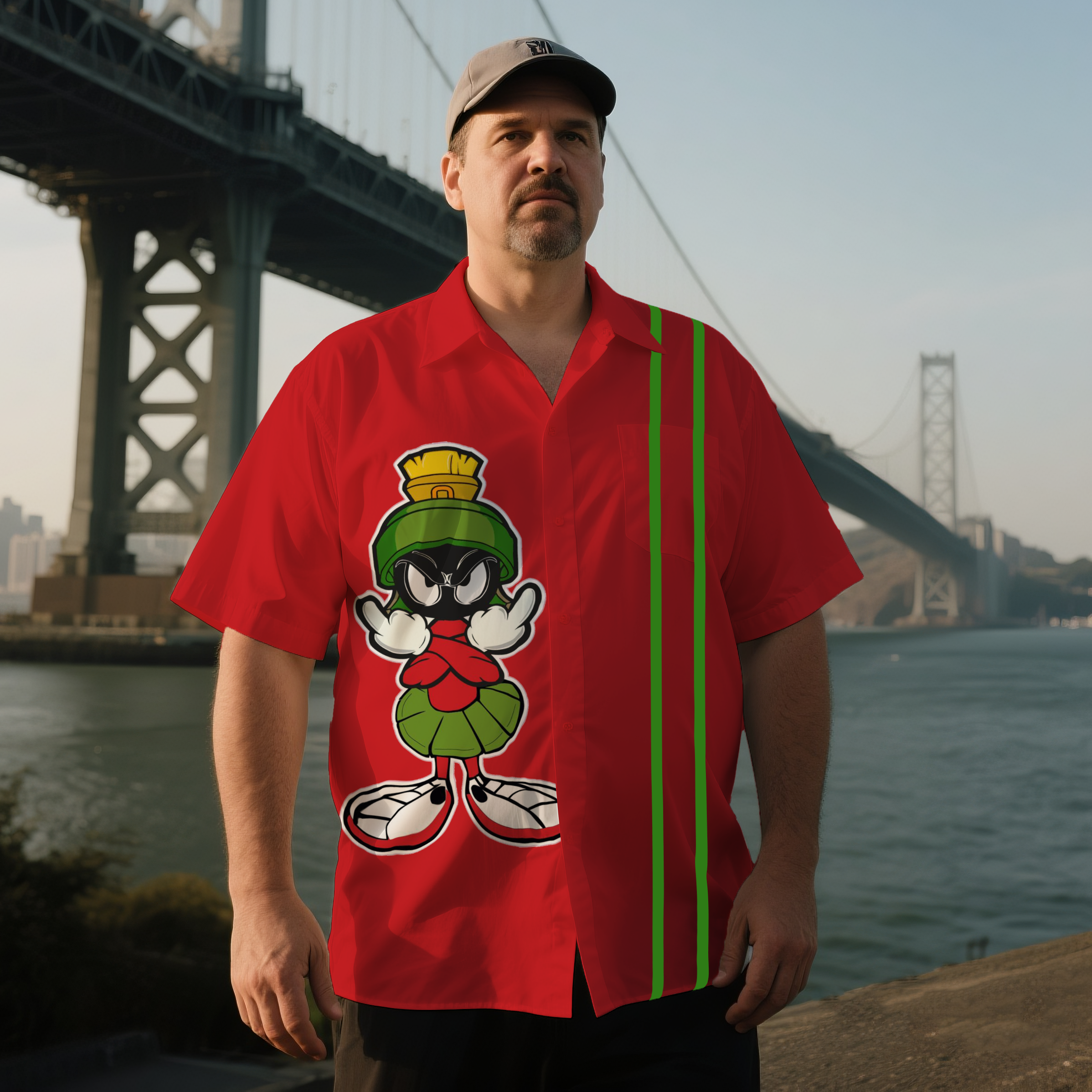 Men's Classic Nostalgic Anime Stripe Costume Printing Short Sleeve Shirt