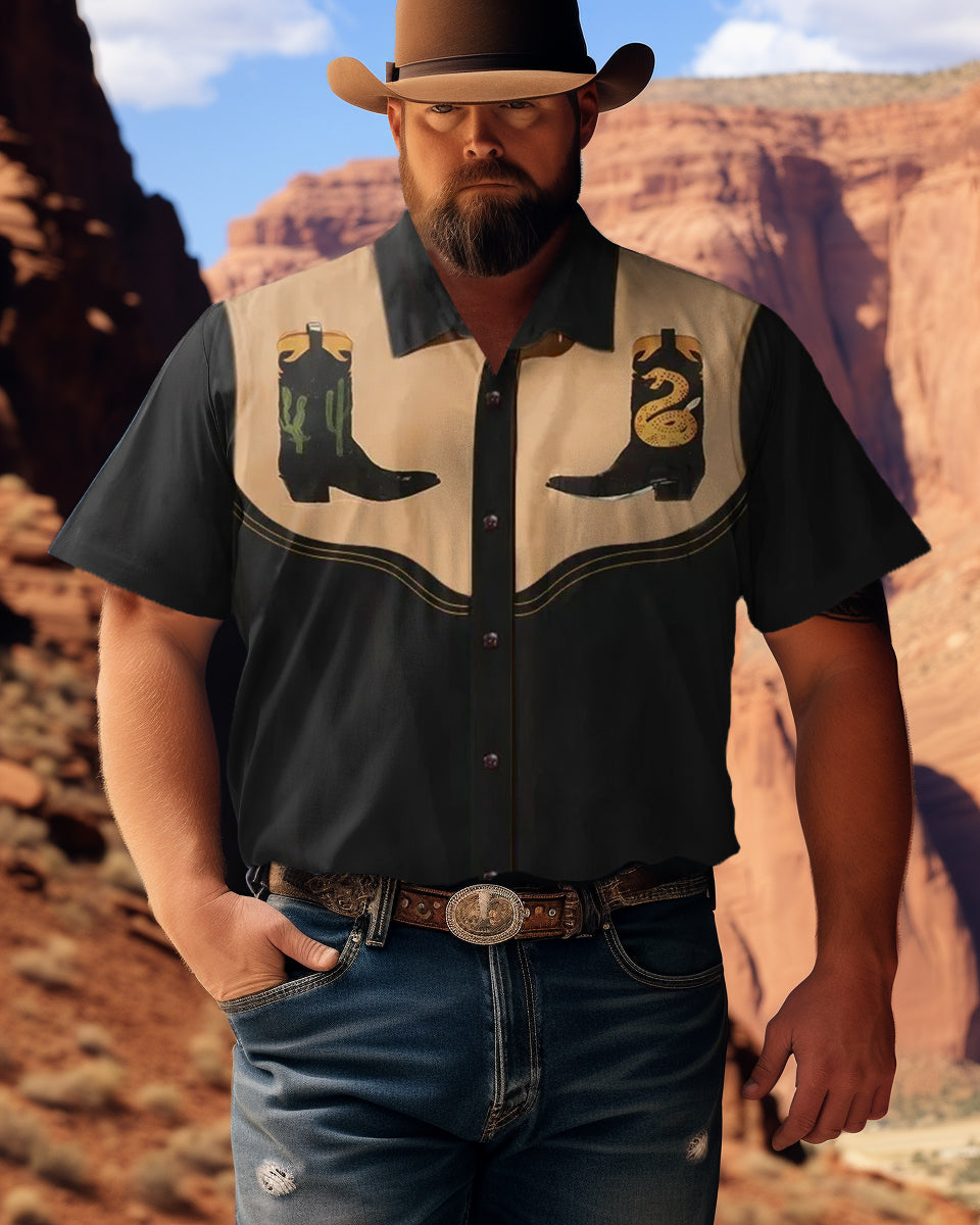 Men's Classic Western Cowboy Boots Print Plus Size Short Sleeve Shirt