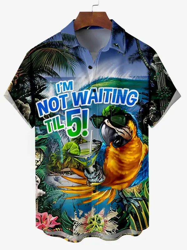 Men's Comfortable Hawaiian Coconut Tree Seaside Print Plus Size Short Sleeve Shirt