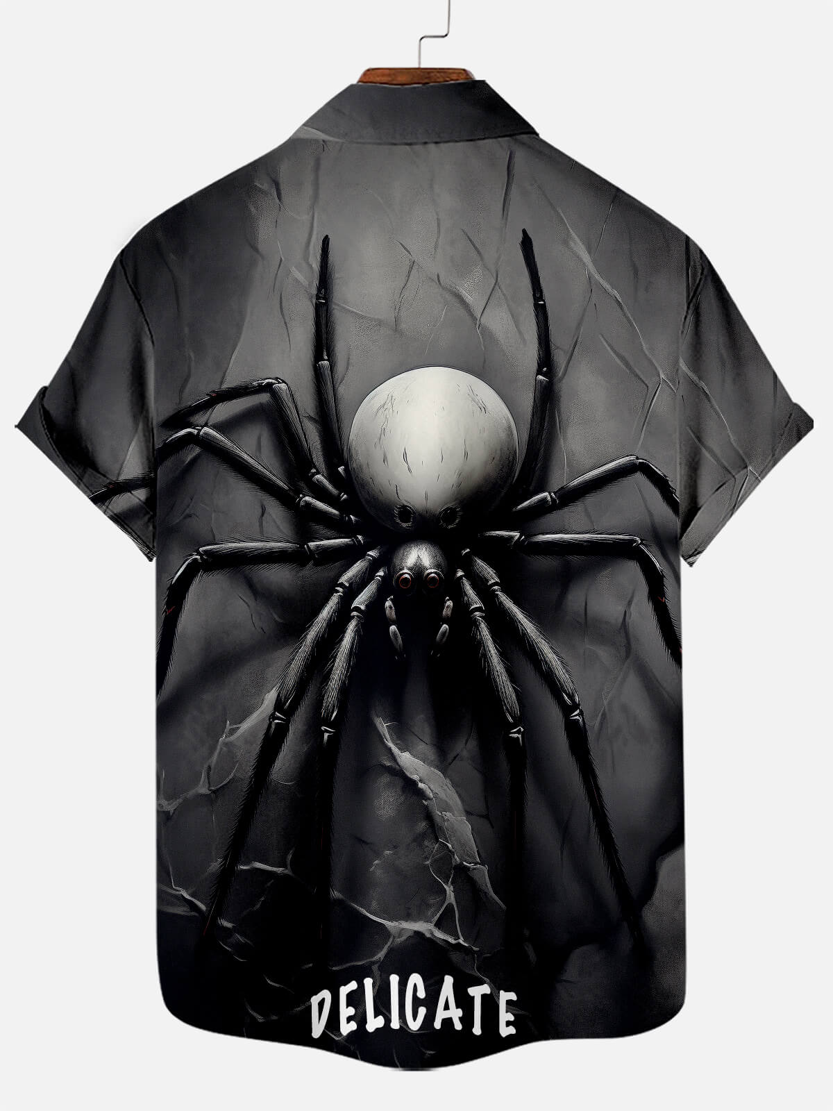 Men's Halloween Horror Movie Spider Pattern Short Sleeve Shirt