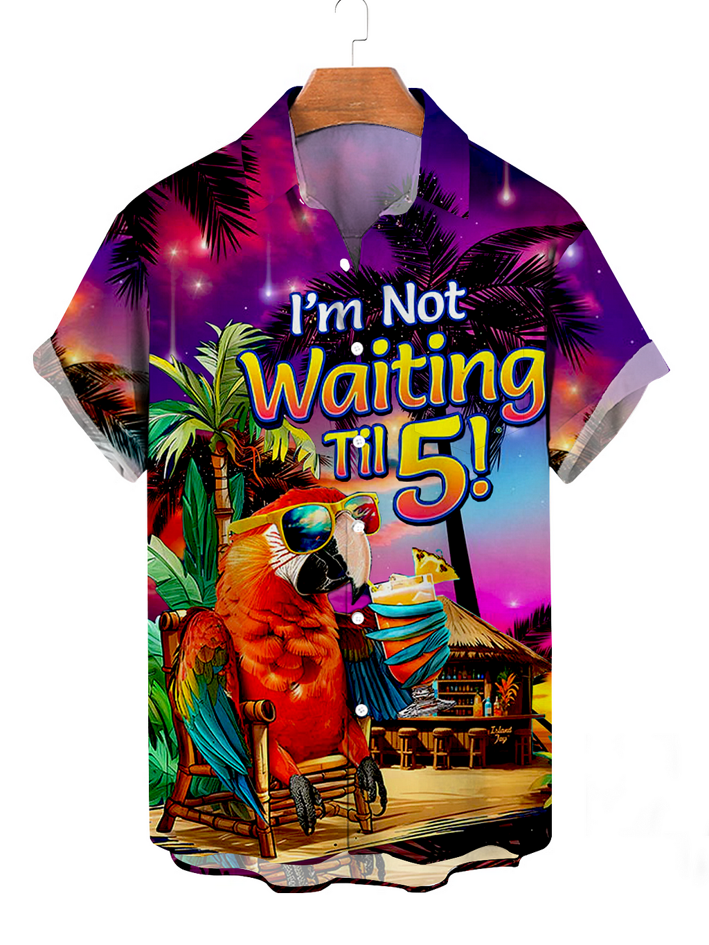 Men's Hawaiian Glasses Parrot Print Plus Size Short Sleeve Shirt