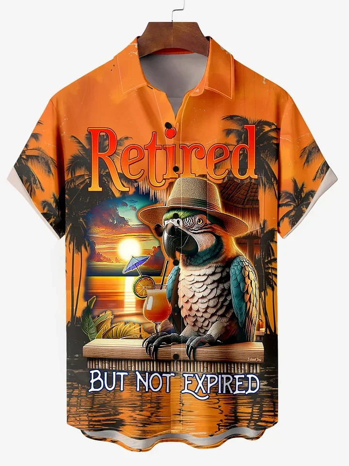 Men's Hawaiian Retired Parrot Print Plus Size Short Sleeve Shirt