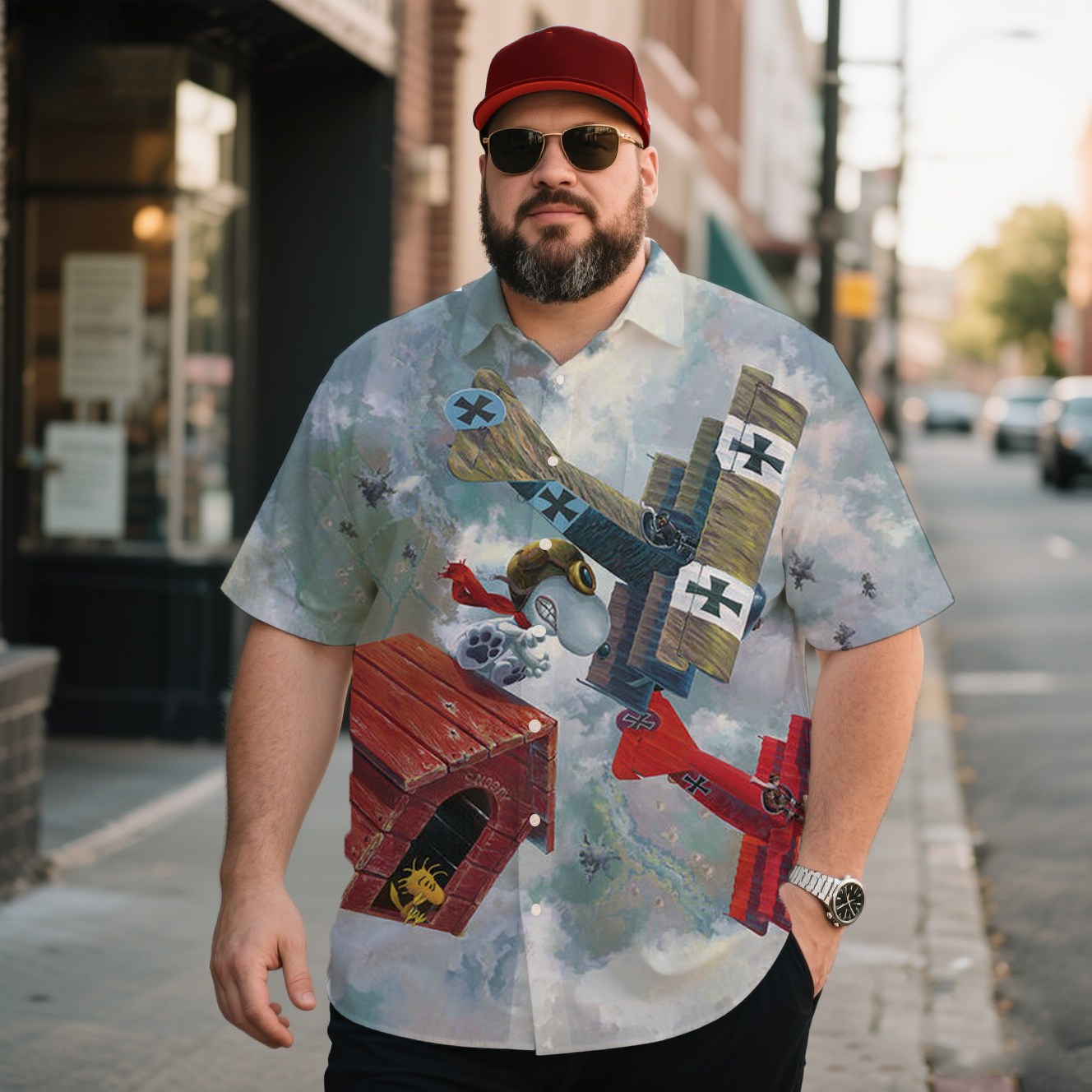 Men's Nostalgic Anime Airplane Dog Costume Printing Short Sleeve Shirt