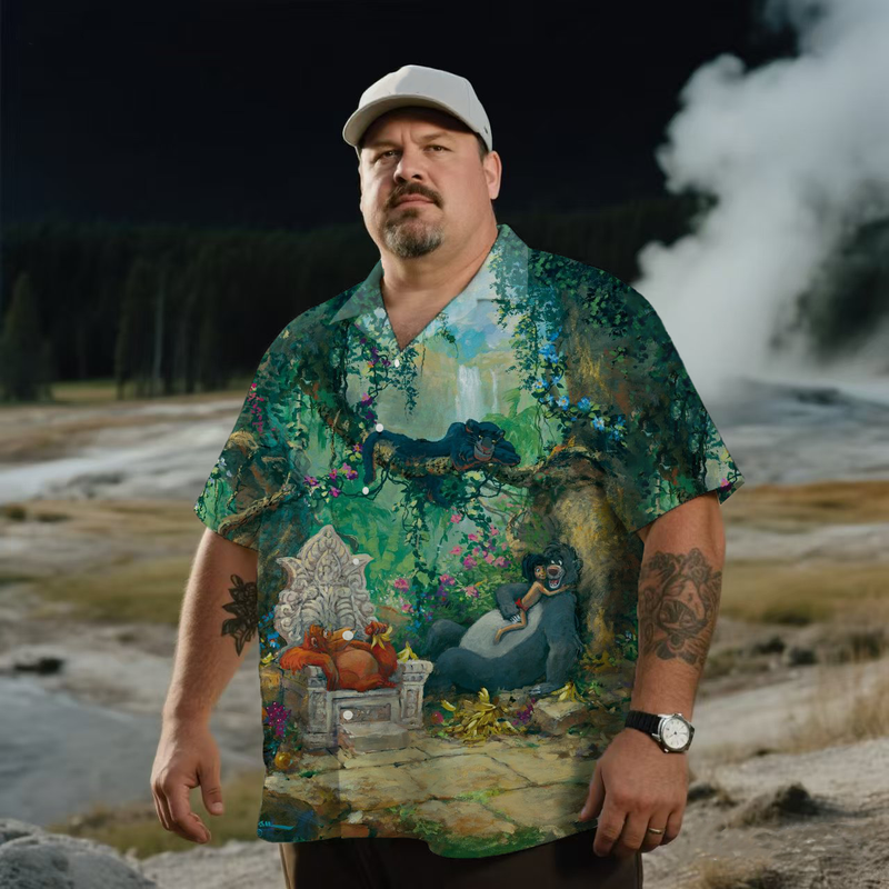 Men's Nostalgic Anime Wild Jungle Kingdom Printing Short Sleeve Shirt