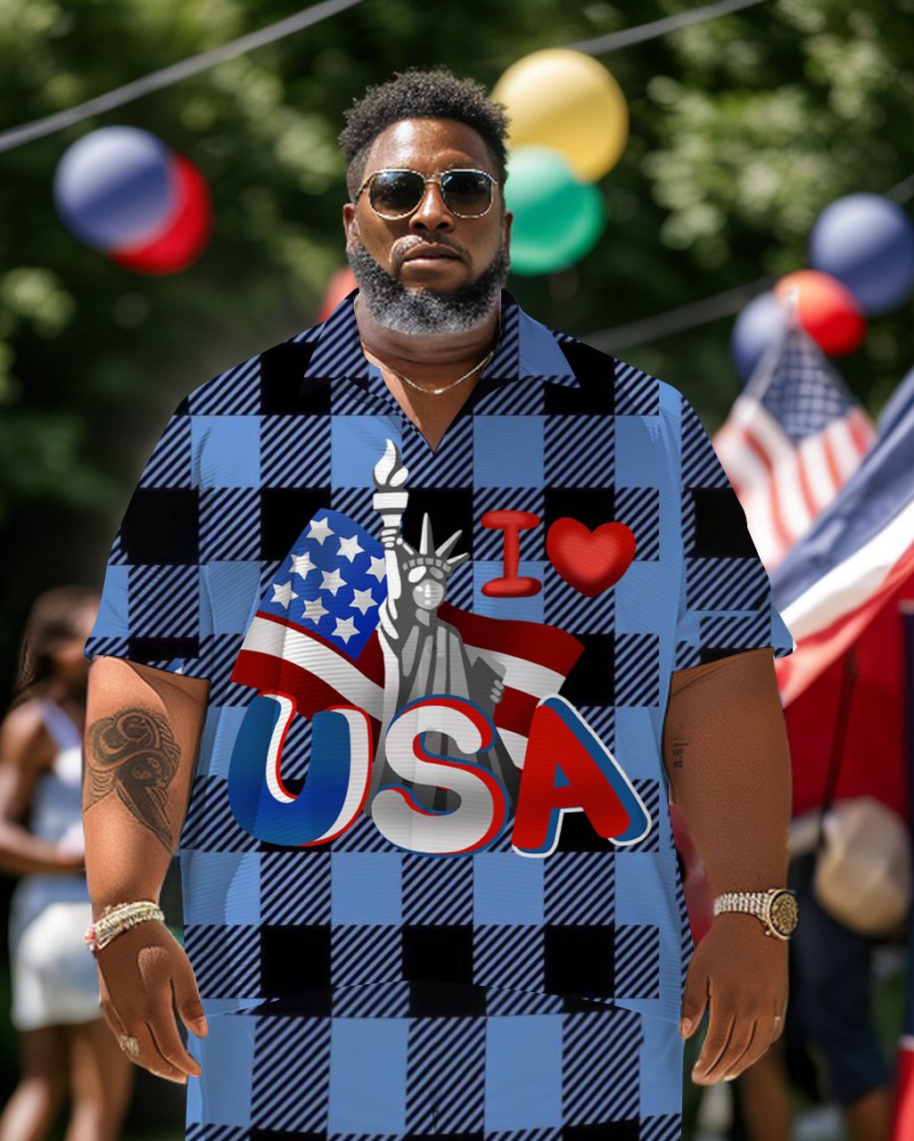 Men's Plus Size Independence Day Short Sleeve Shirt and Shorts Set 003