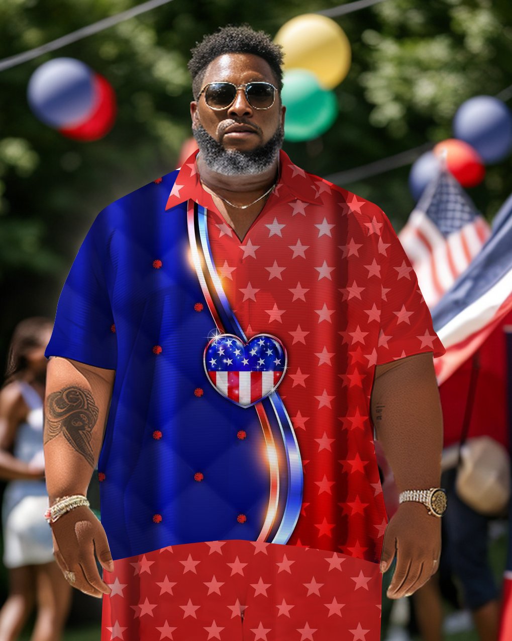 Men's Plus Size Independence Day Short Sleeve Shirt and Shorts Set 006