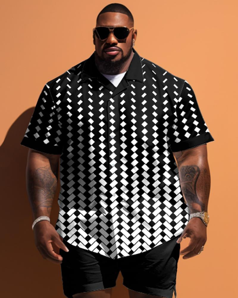 Men's Plus Size Simple Geometric Pattern Short Sleeve Shirt Shorts Set
