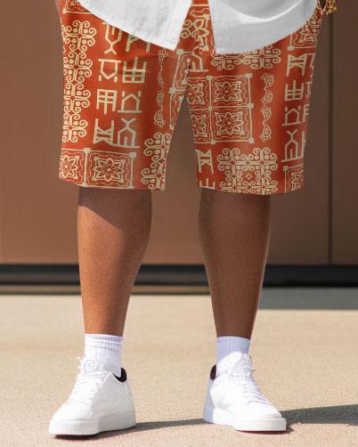 Men's Plus Size Simple Retro Ethnic Pattern Short Sleeve Shirt Shorts Suit