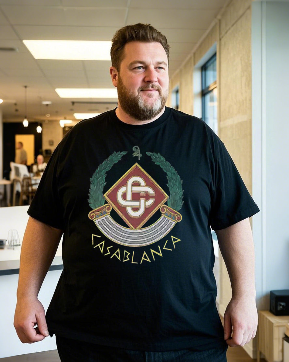 Summer Black Casual Short-Sleeve Printed T-Shirt (100% Breathable Cotton, Plus Size