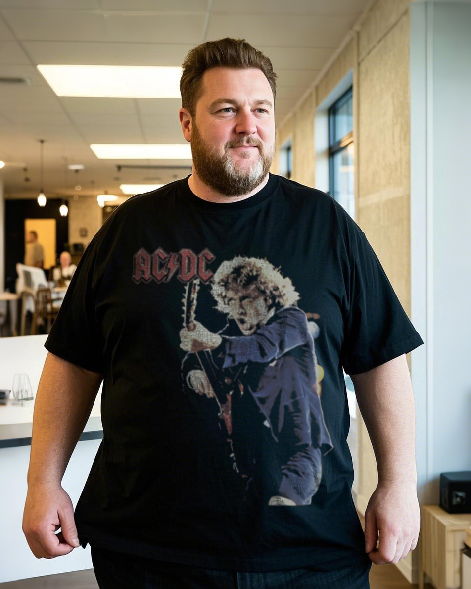 Summer Black Casual Short-Sleeve Printed T-Shirt (100% Breathable Cotton, Plus Size