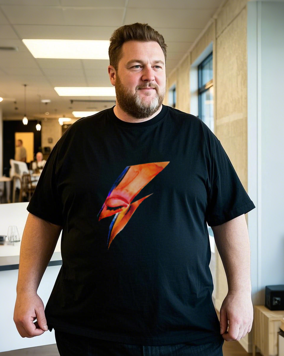 Summer Black Casual Short-Sleeve Printed T-Shirt (100% Breathable Cotton, Plus Size