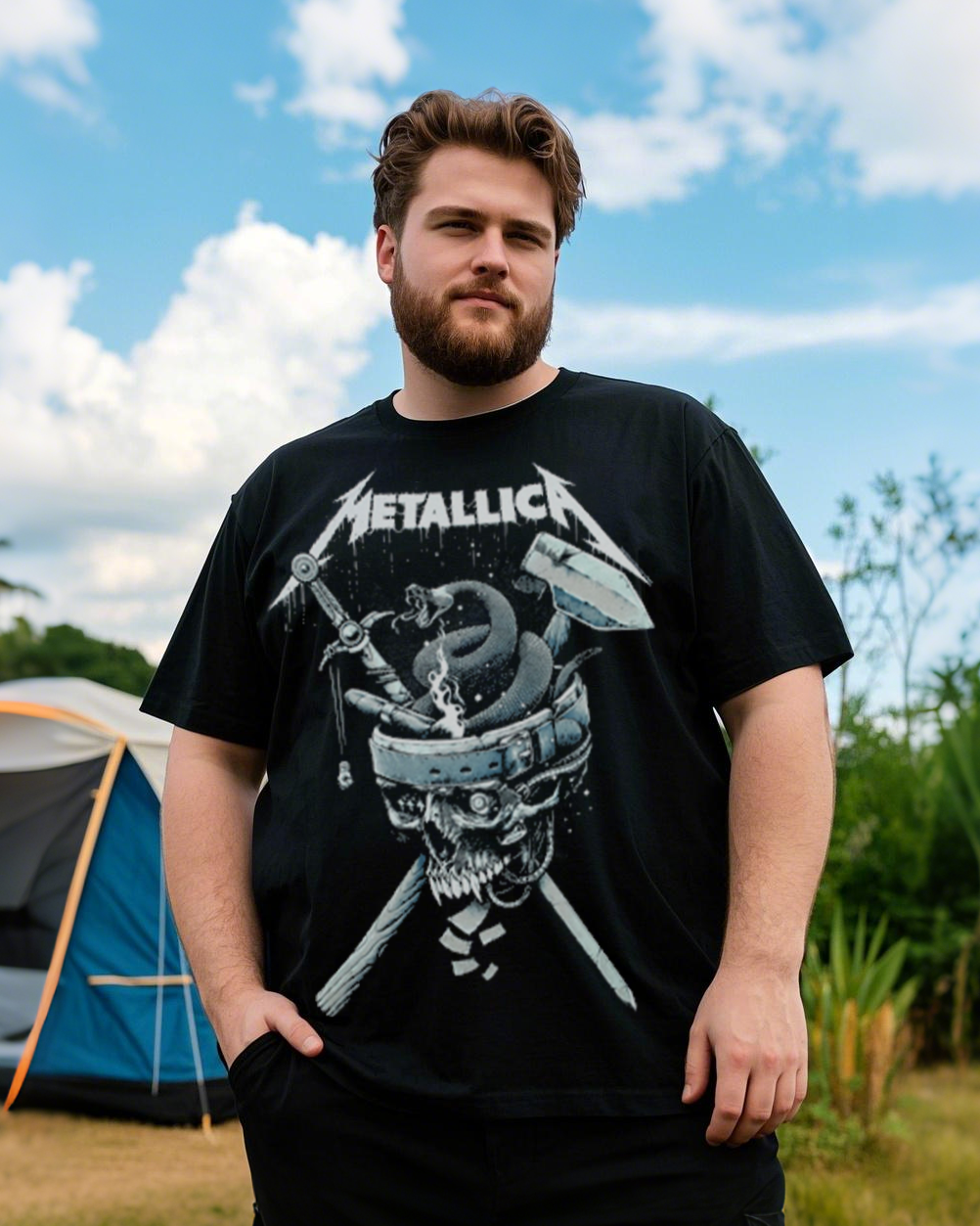 Black Breathable Plus-Size T-Shirt – Loose Flow Cotton Top with Trendy Summer Print