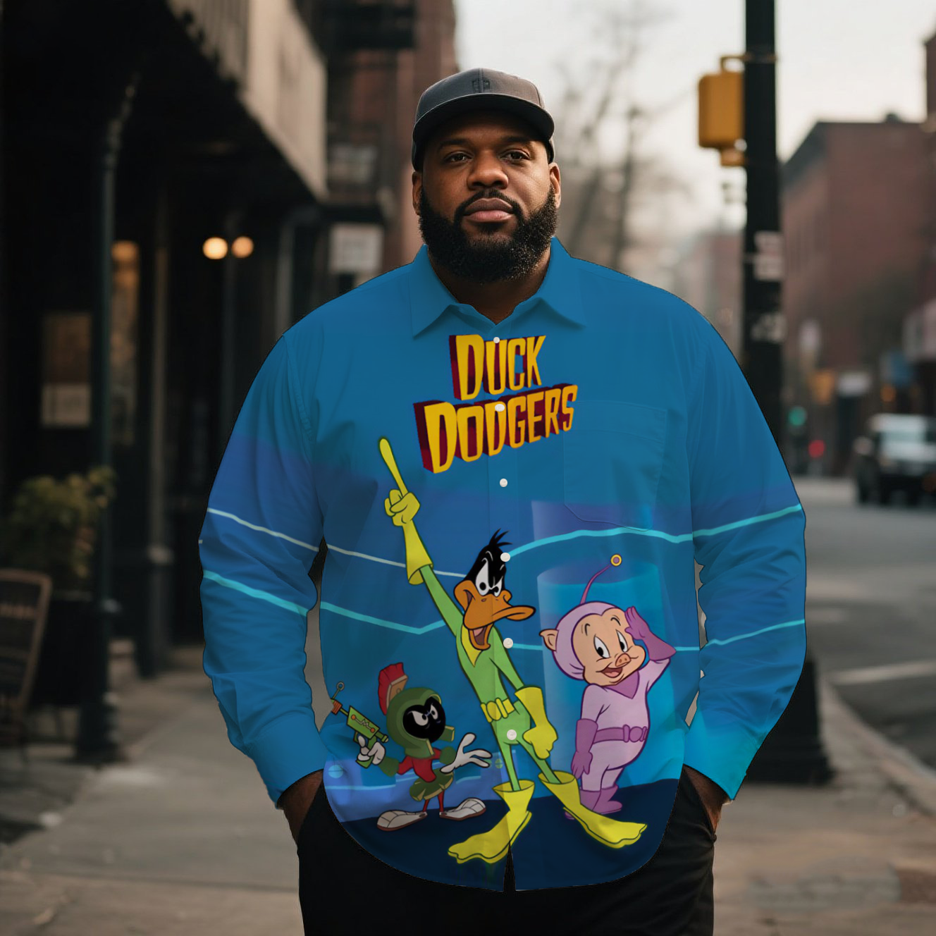 Men's Vintage Nostalgic Anime Duck Costume Printing Long Sleeve Shirt