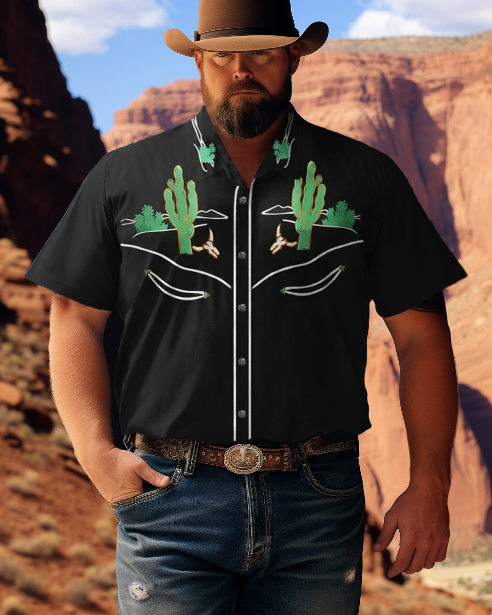 Men's Western Cactuses Printed Plus Size Short Sleeve Shirt