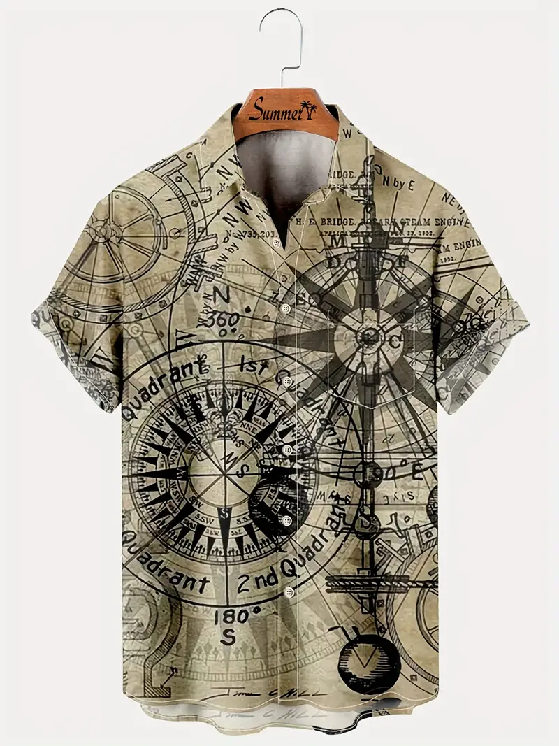Navigation Theme Printed  Casual Men's Plus Size Short Sleeve Shirt