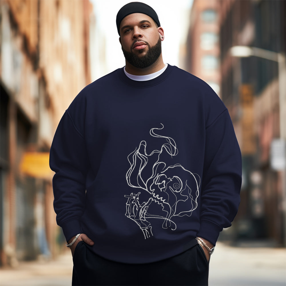 Simple drawing of skull smoking Men's Plus Size Sweatshirt