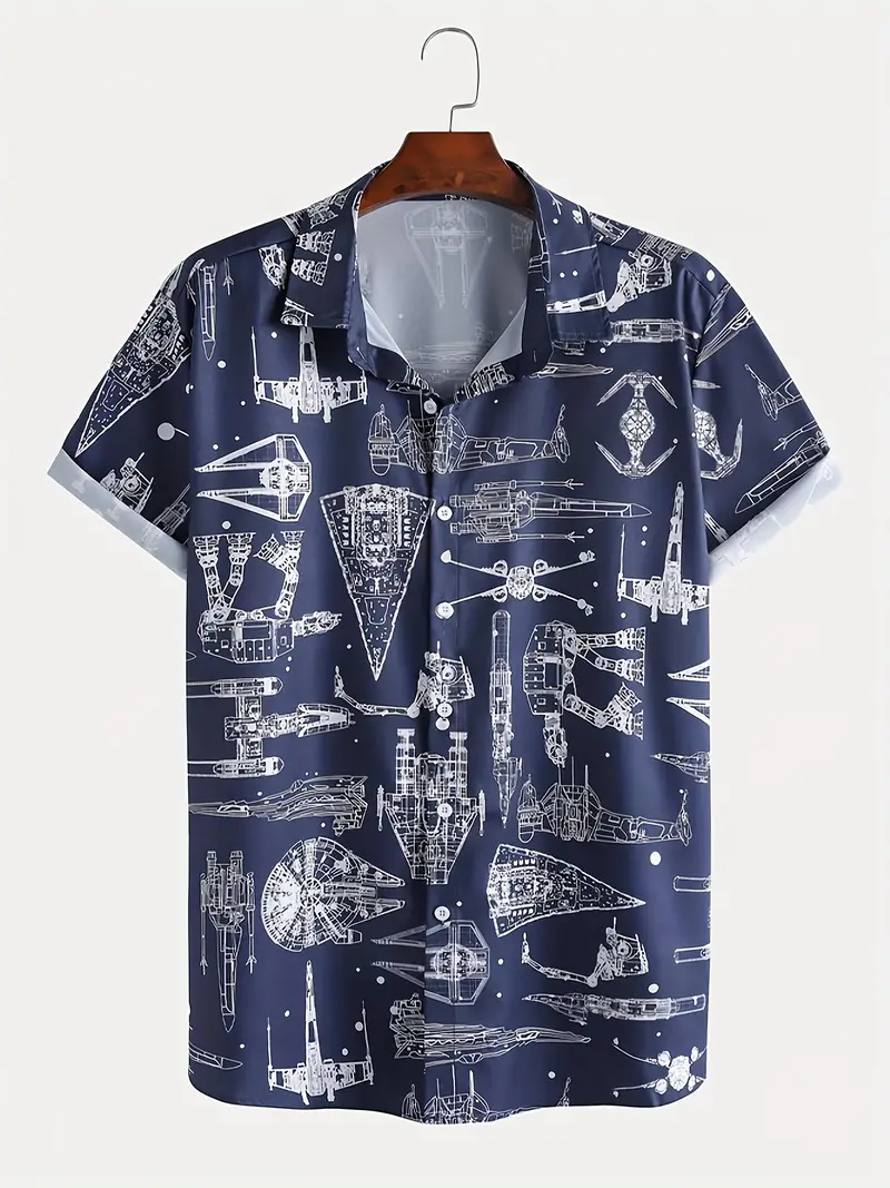 Star Wars Spaceship Blueprint Design Printed  Casual Men's Plus Size Short Sleeve Shirt