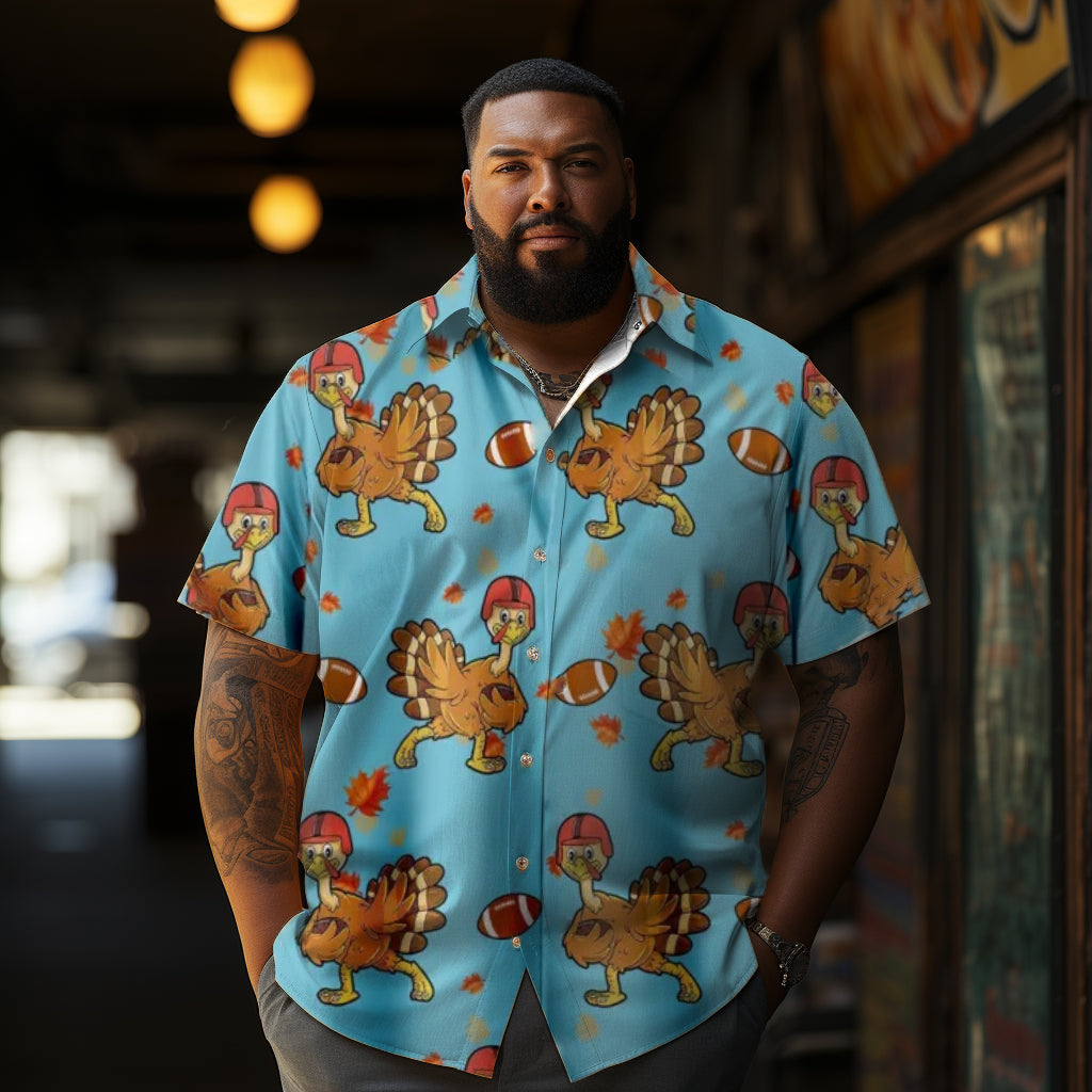 Thanksgiving Funny Turkeys Men's Plus Size Short Sleeve Shirt